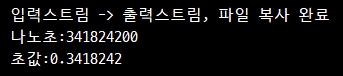 버퍼드 스트림을 사용한 덕분에, 파일 복사에 소요되는 시간도 0.34초로 대폭 줄어들었다.