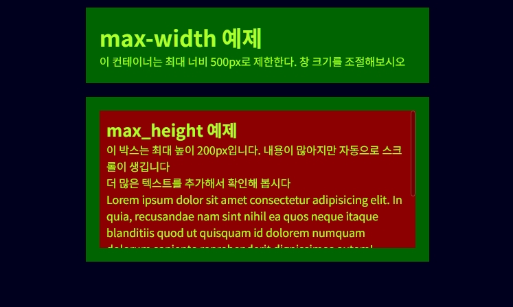 <p>이 컨테이너는 최대 너비 500px로 제한한다. 창 크기를 조절해보시오</p>