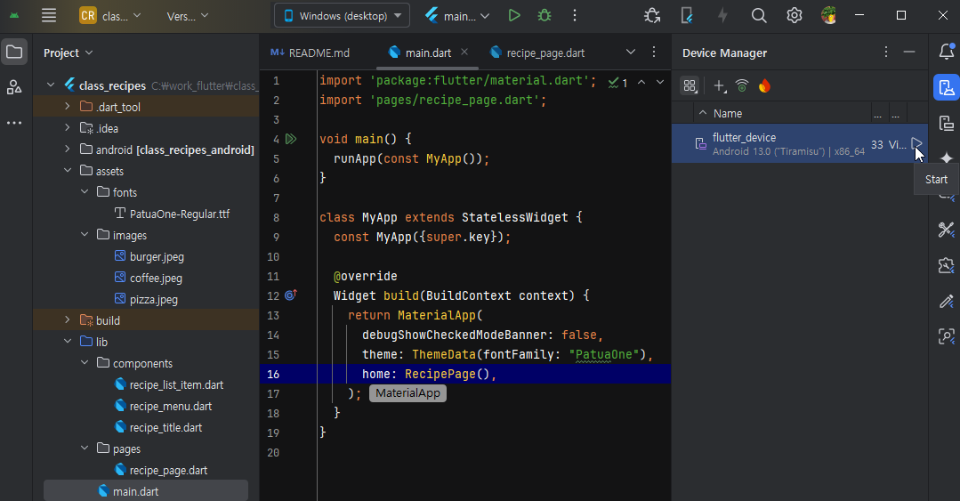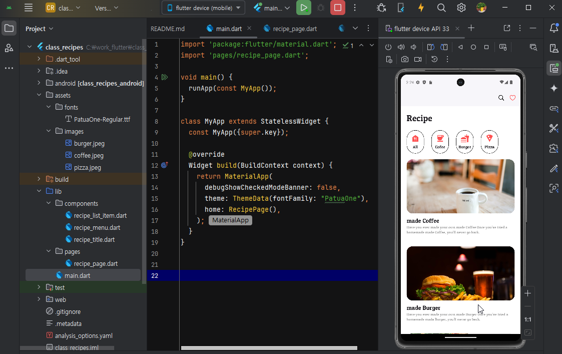 플러터) 레시피 앱 만들기 2. 메인페이지 코드구현