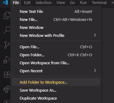① 상단 메뉴 파일(File) > 작업 영역에 폴더 추가...(Add Folder to Workspace...) 항목을 선택.
