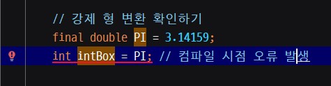 // int intBox = PI; // 컴파일 시점 오류 발생