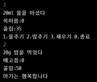 아기에게 밥과 물을 주면서 잠을 관리하는 프로그램을 짜봤다.