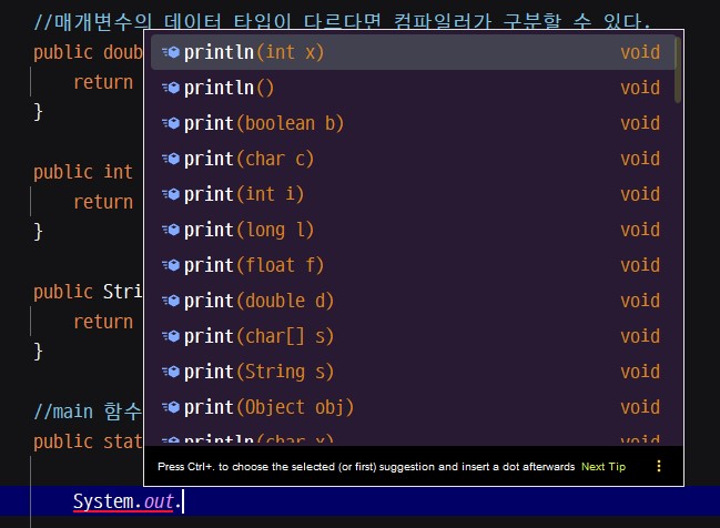 //매개변수의 데이터 타입이 다르다면 컴파일러가 구분할 수 있다.