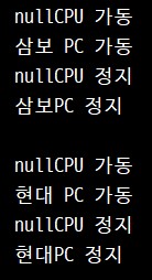 System.out.println("stopCar() 자동차가 멈춥니다.");
