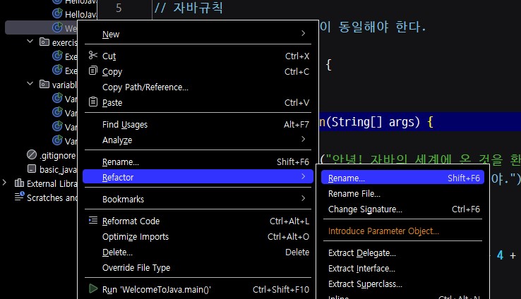 다를 경우 오류가 나게 되고 리팩터, 리네임 기능으로 수정할 수 있다.
