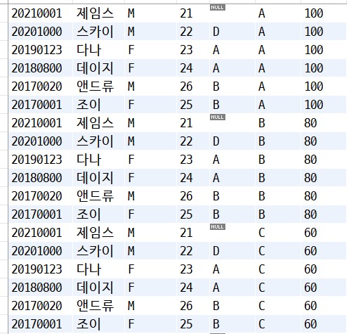 즉, cross join은 inner join의 한 형태다. 잘 쓰이지는 않는다.