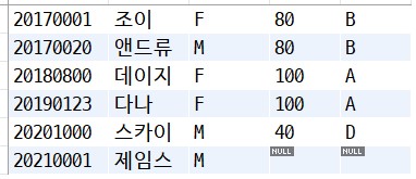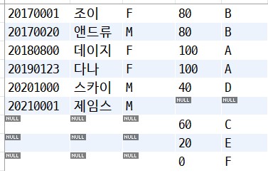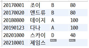 right join tb_grade as g on s.grade = g.grade;