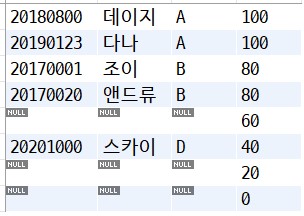 -- 유니온 결과값 null값 제거
