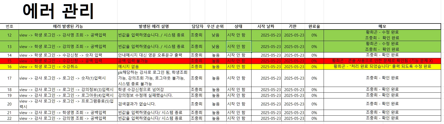이같은 내용을 조원들이 엑셀표에 통합했으며, 오류를 추적해서 해결할 수 있었다.
