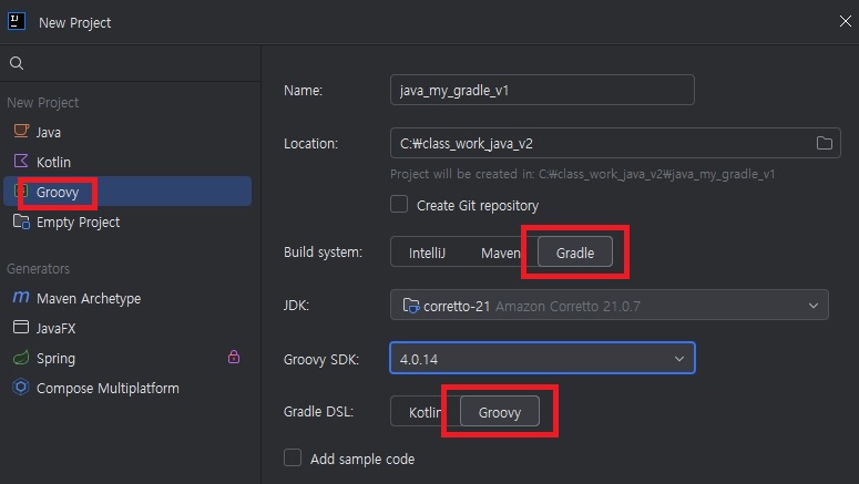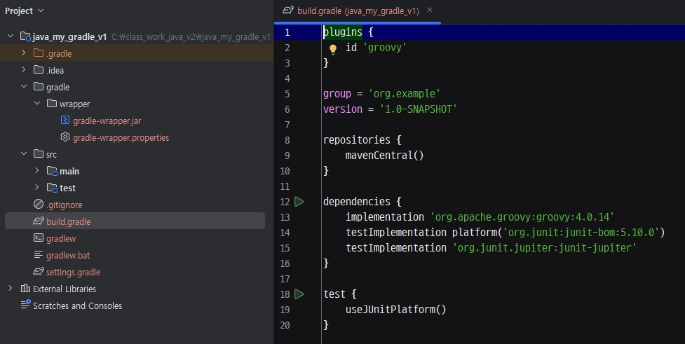 갓 만들어진 프로젝트 groovy 프로젝트의 모습