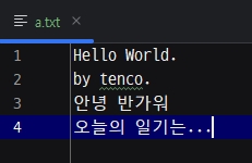 String data = "Hello, Java FileOutputSystem 안녕 반가워";