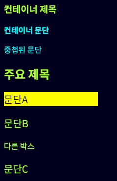 /* cotainer 자손 p태그 글자색을 파란색으로 */